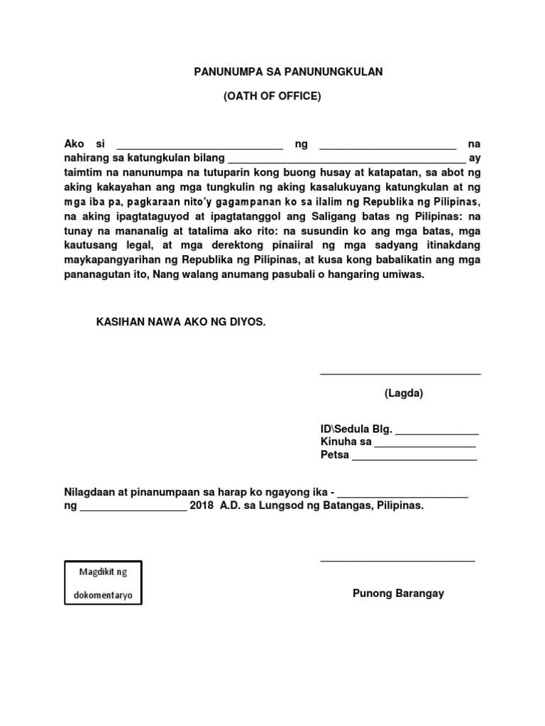 Panunumpa Sa Panunungkulan Sk Pdf